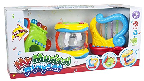 Set of 3 Musical Light Up Interactive Toy Instruments for Toddlers (Trumpet Drum Harp) [並行輸入品]
