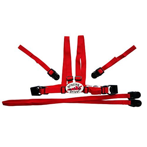 Easy wash Red harness and reins with racing car buckle;Includes anchor straps for use in Highchairs;4 point safety harness system;Release clasp out of childs reach;Great for helping children learn to walk