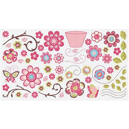 Wall Appliques includes 4 - 10 inch x 18 inch sheets of various sized wall stickers, They range in size from 2 inches x 1 inch to 5.5 inches x 5.5 inches, Quick and easy - just peel and stick; removable and reusable, and will not harm walls, Hanging instructions are included, Coordinates with the Taffy Crib bedding set and many floral nursery collections