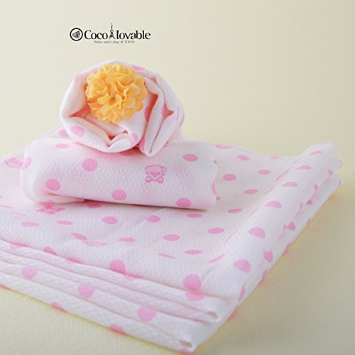 ガーゼハンカチ ベビー 綿100% 2重ガーゼハンカチ 約 35×35cm 5枚組 (可愛い ドット ピンク) ココベビー