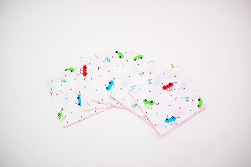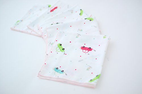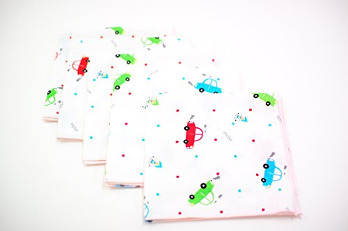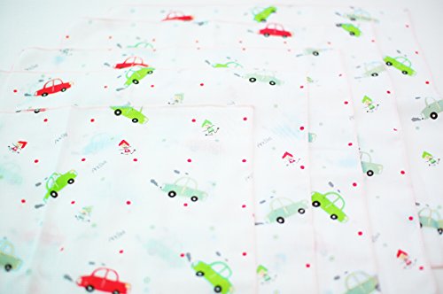 - • 【セット内容】 2重ガーゼハンカチ 35×35cm 5枚組 (可愛いくるま)