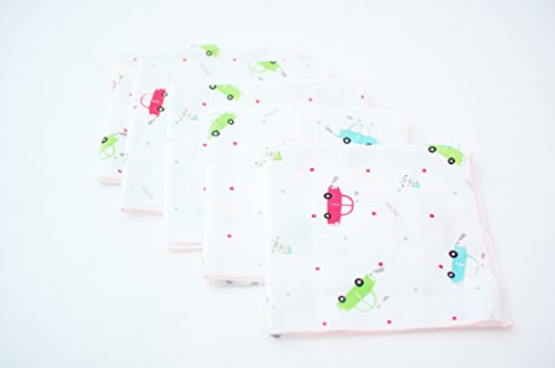 ガーゼハンカチ ベビー 綿100% 2重ガーゼハンカチ 約 35×35cm 5枚組 (可愛いくるまさん)