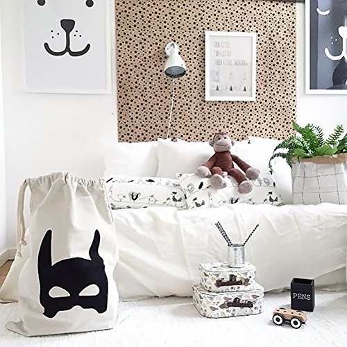 Coco * Storeかわいい赤ちゃんおもちゃストレージキャンバスバッグBearバットマンランドリーHangingドローストリングバッグ ホワイト
