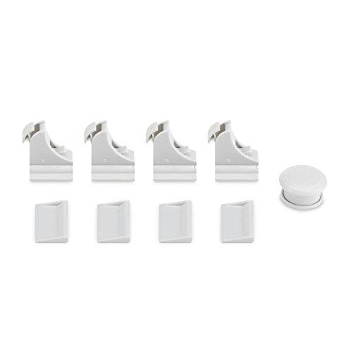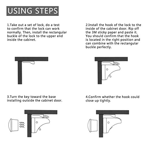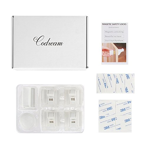 Babies are curious, Codream Safe Cabinet Locks come with 4 locks and1 key that can be installed in minutes on cabinets and drawers. Their design utilizes 3M adhesive, so don't worry about drilling holes into your furniture or scavenging for a Philips head screw driver.