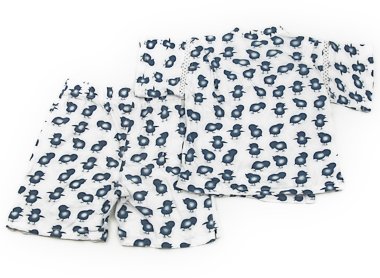 - 実際のサイズ表記はMで100-110cm相当です。カットソー生地の甚平で動きもラク。若干ヨレ感はありますが手触りの良いお品です。