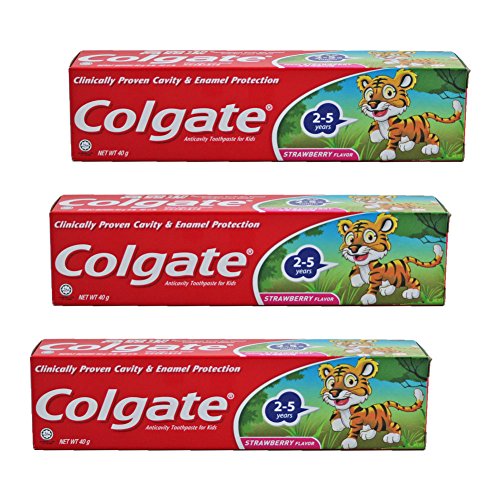 コルゲート Colgate 子供用 Kids-STRAWBERRY FLAVOR (タイガー, 40g) 3個セット [並行輸入品]