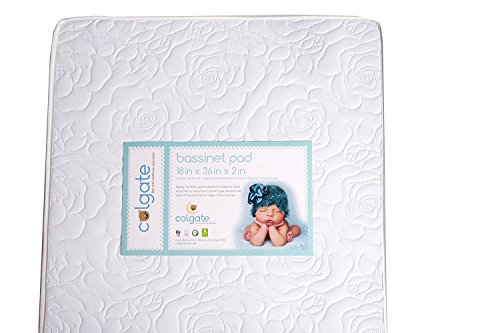 Size:18' x 36' x 2' ツ?|ツ? Style:Rectangular Colgate・?・s 18' x 36' x 2・?・ bassinet pad mattress provides a firm, supportive sleep and play surface for infants. This high-quality, easy-to-clean pad can be used on either side and fits many popular cradle models. The white quilted vinyl cover is waterproof, tear-resistant and easy to clean with a damp cloth and mild soap. This Colgate cradle mattress is GREENGUARD Gold certified to pass tests for low emissions standards for over 10,000 volatile organic compounds (VOCs). It has the CertiPUR-US certification for safe foam and passes all national and state flammability standards・?・without the use of harmful chemicals, and passes the CPSIA standards for safe chemical composition. This Cradle mattress is made by Colgate, the crib mattress specialist since 1955. It is proudly made in the USA. It is recommended that you measure the interior of your cradle to ensure a snug bassinet mattress fit.