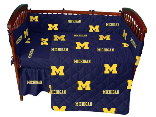 Standard;100% Cotton Sateen-200 Thread Count;Kids & Toddlers;Comforter & Bumper Pad Are Quilted;Officially Licensed Michigan Wolverines Baby Crib Bedding Set
