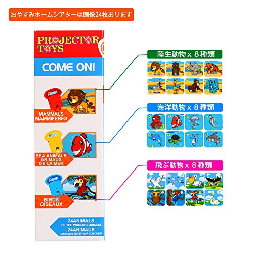- 【豊富な画像パターン】おやすみホームシアターは3週類あり:海洋動物、陸生動物と飛ぶ動物で、合計画像24枚あります。天井だけでなく壁に向かって30cm以上の距離から投影すると、四角な画像が得られます。