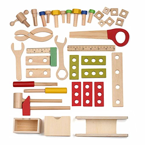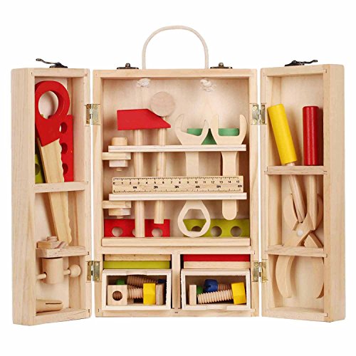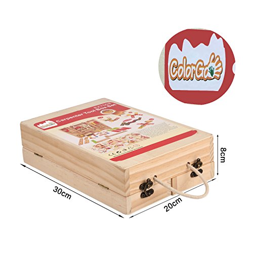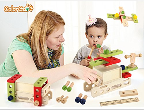 ColorGo 大工さんセット 収納トントン 子供知育玩具 木製 ツールボックストントン 積み木 パズル 赤ちゃん能力を育てるおままごと セット