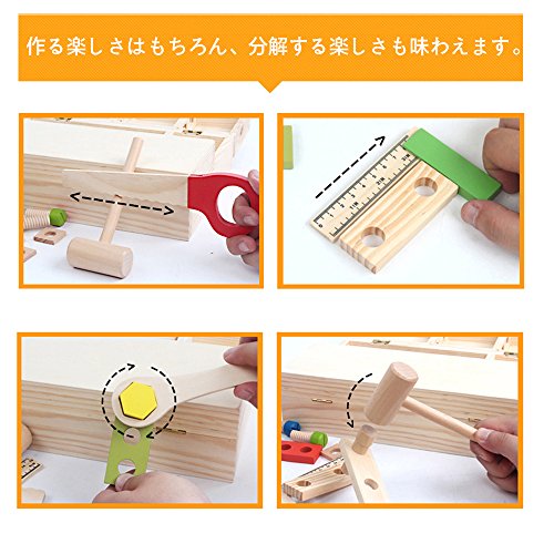 - ColorGoのおもちゃは自然素材、水性塗料を使用、厳しい安全性と品質基準を採用して、木くずも気にならず変形や割れ、バリもなく、おもちゃの安全はもちろん、万が一お子様が舐めても心配のない木製 ツールボックストントンです。