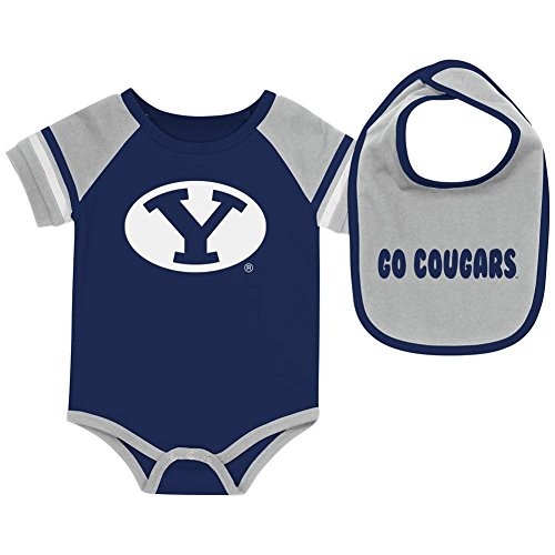 幼児BYU CougarsグレーRoll Out Onesieとよだれかけセット 3/6 グレー