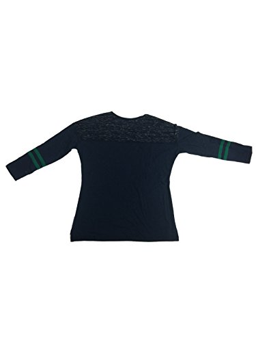 最高品質のネイビーにネイビーとホワイトの斑点の肩インサートとベージュと緑のグランジロゴユースガールズ長袖クルーネックTシャツ胸ポケットが付いています。肩の挿入は、半透明のバーンアウトスタイル素材でできています。新品・タグ付き。100 %本物です。