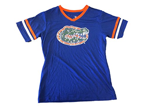 Florida GatorsコロシアムGirlsブルーウルトラソフトスパンコールロゴSS VネックTシャツ( M )