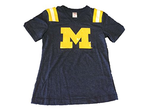 Michigan WolverinesコロシアムGirls NavyスパンコールロゴSS VネックTシャツ( M )