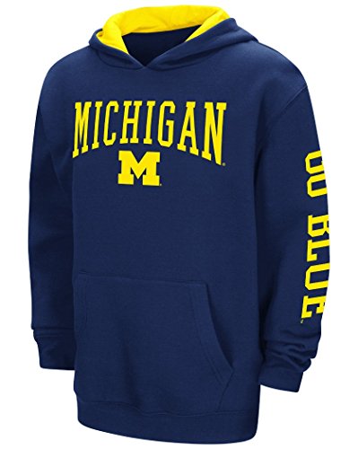 Michigan Wolverines NCAAエンドゾーン」プルオーバーフード付きユーススウェットシャツ – Navy