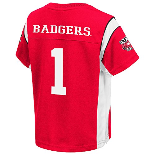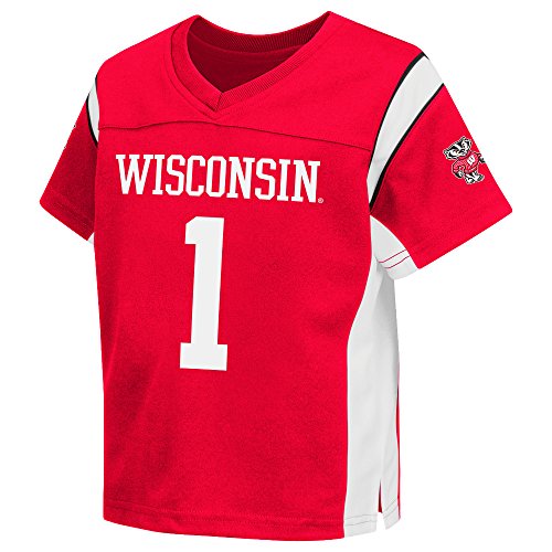 当社アナグマは子供への公式ジャージが行われるようになっている場合は本物です!100%ポリエステル生地の大胆スポーツウィスコンシン公式のチームカラーとロゴ。使用する色の肩のデザインと側面のパネルのシャツに追加本格的な外観になっています。