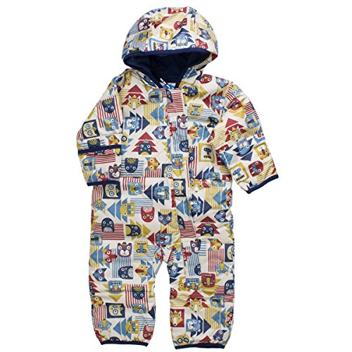 鮮やかで楽しいパターンが揃ったロンパース。高品質ダウンを使用しているので、とてもあたたかな着心地です。 表側は水や汚れが付きにくい仕様です。フロントジッパーは左脚まで斜めに大きく開くので、着替えも簡単です。 このモデルは17FWとなります。16FWと品番と仕様は変わらず柄が変更されております。
