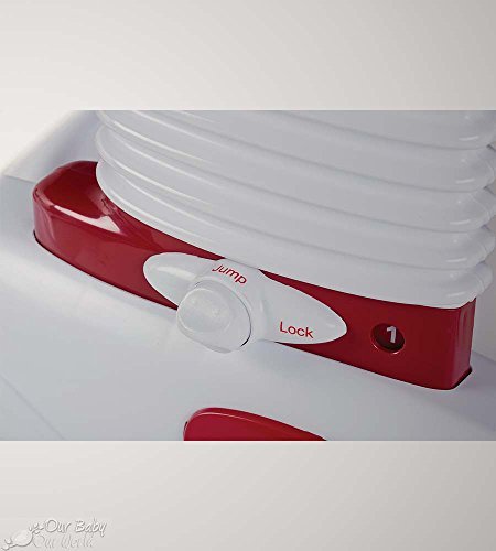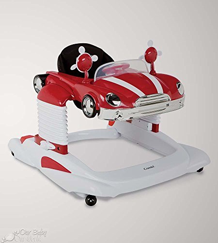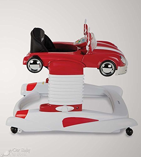 The All-in-One Activity Walker with a colorful automotive theme provides a playful and stimulating experience for your toddler.;A lockable bounce feature, anti-skid pads, steering wheel with lights and sounds, attached fun mirrors and removable hood for snack/play tray make for a safe and comfortable environment for your child. A wipeable seat cushion makes cleaning easy.;Product Dimensions: 28 x 26 x 21.5;Recommended Age: Recommended for children that can sit upright unassisted;Recommended Weight (in pounds): 25
