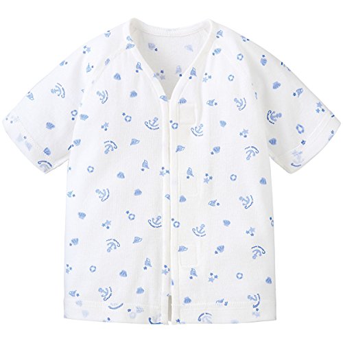 アンカーや浮き輪などのマリン柄がスタイリッシュ。男の子も女の子も使えます。ぱっと開いてさっとなでて閉められるワンタッチテープ式でお着替えしやすく、ママもラクちんです。( 7分袖、外縫い仕様 )