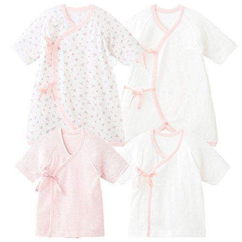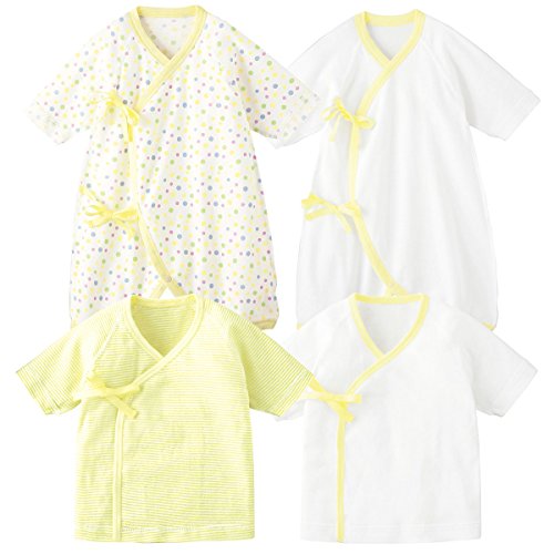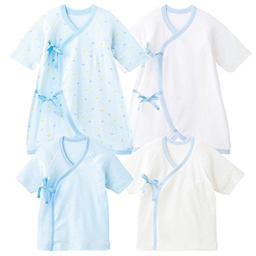 使いやすい白と、ちょっぴり気分を変えたり、おしゃれしたい時にぴったりなボーダー柄の短肌着とコンビ肌着の4枚セット。洗い替えまでまとめて揃います。