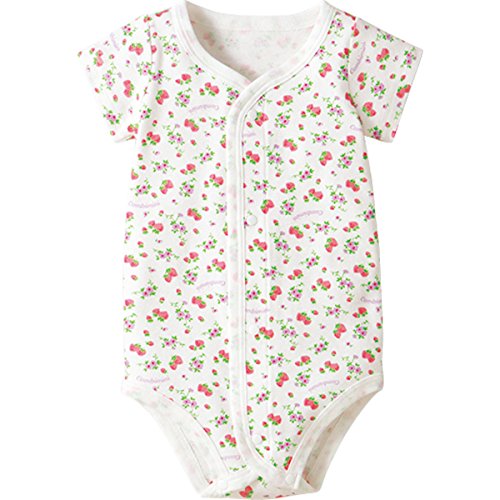フライス素材で型くずれしにくく、前開きでお着替えもスムーズ。いちごや花、水玉でガーリーテイストに味付けしました。( かけ違い防止ボタン付き )