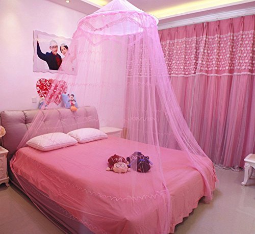 ラウンドフープDecorativeレースプリンセスベッドキャノピーMosquito NetフィットCribツイン ツイン ピンク