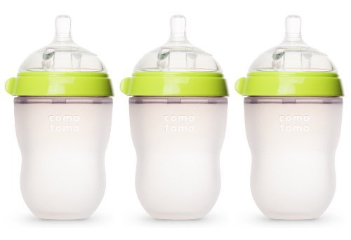 3 Pack of Green 8 oz Comotomo Bottles;Comotomo baby bottles are deisgned to most closely mimic breastfeeding to reduce bottle rejection and nipple confusion issues;Ultra wide-neck design allows easy cleaning by hand without a brush; Safe in microwave, boiling water, dishwashers and sterilizers;Nipple and body is made of 100% safe hygienic medical grade silicone
