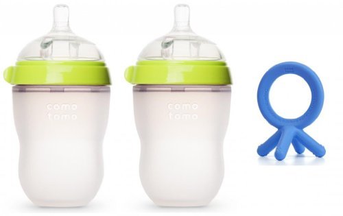 - Comotomo 8 Ounce Baby Bottles with BONUS Teether, Boy by Comotomo