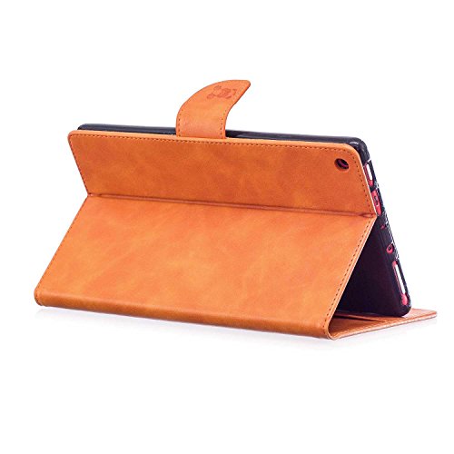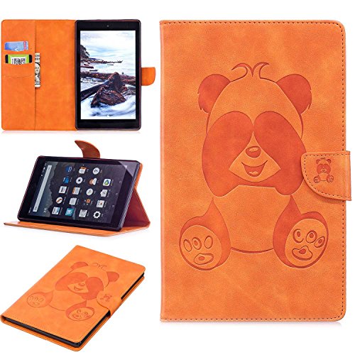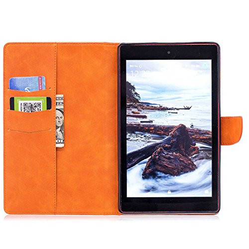 Fire HD 8 カバー Conber高品質 PU レザー 軽量 超薄型 手帳型 ケース Kindle Fire HD 8 (2017第七世代/2016第六世代) タブレット 用 自動スリープ機能 マグネット 横開き スタンド機能 カード収納 全面保護 ケース - (オレンジ)