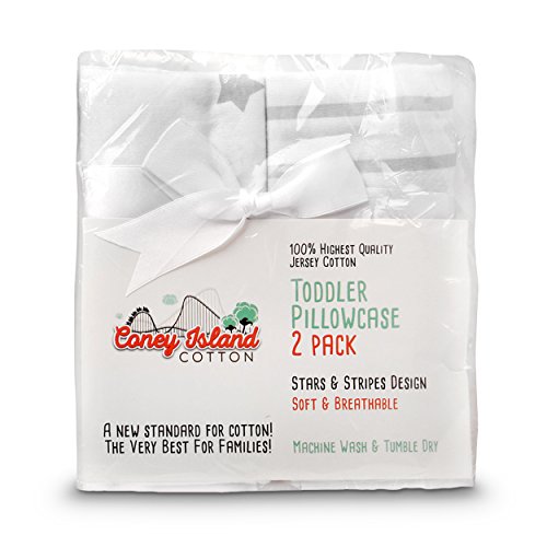 Softest and most comfortable! Unsurpassed high quality knit 2 pack;Stars & Stripes design is very much in style for boys or girls. Adorable!;Fits toddler pillows. Lightweight and breathable;Machine Wash and Dry. Easy care for busy moms;Every baby deserves the comfort and style of Coney Island Cotton! Perfect baby shower or registry gift!