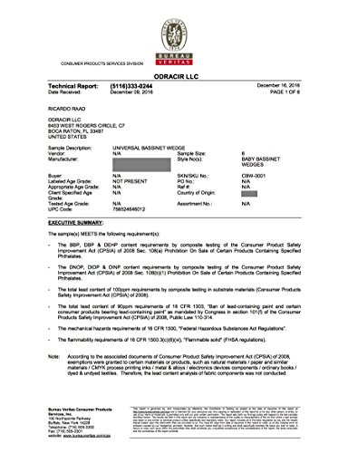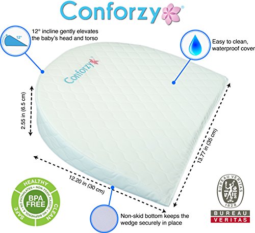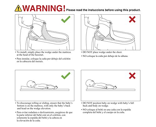Ideal for newborns that use bassinets.;Easy-to-clean waterproof cover. Fits most bassinets.;Non-skid bottom keeps the wedge securely in place under bassinet mattress.;Gently elevates the baby's head and torso.;Reduces nasal congestion caused by colds and flu as well as discomfort caused by acid reflux by gently raising the baby's head to optimum height
