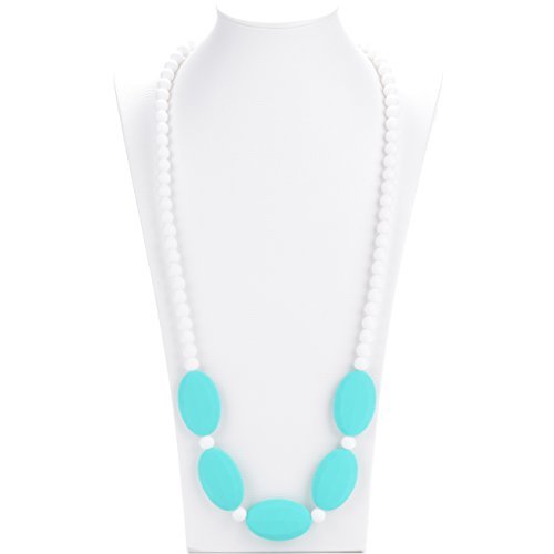 100% FOOD GRADE SILICONE AND SAFE - BPA Free, Phthalates Free, Lead Free, PVC Free, Latex Free, Metal Free, and Cadmium Free;MOMS AND BABIES LOVE IT - The soft, stimulating texture of the necklace soothes the pain of teething. It keeps your infant distracted and engaged while in your arms. Provides a closer bond between you and your baby while looking like the stylish mom;SAFETY FIRST - Breakaway clasp for added safety - Refrigerator Safe (If your baby is having an especially bad day just put in fridge for added comfort and support for your babies teething gums) - Chew-Safe Design for your baby;EASY TO CLEAN - Necklace can be wiped clean with soap and water and is dishwasher top shelf safe - no more worries about nasty germs or dirt;100% SATISFACTION GUARANTEE - We are confident your baby will like this necklace and the value that it provides for your baby
