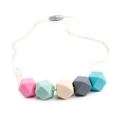 Consider It Maid Silicone Teething Necklace for Mom to Wear - FREE E-BOOK - BPA FREE and FDA Approved - Down to Earth (Pink/Mint/Navajo White/Grey/Turquoise)