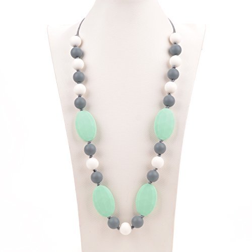 - Consider It Maid Silicone Teething Necklace for Mom to Wear - FREE E-BOOK - BPA FREE and FDA Approved - Utopia (White/Grey/Mint)