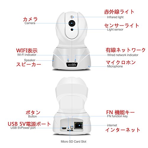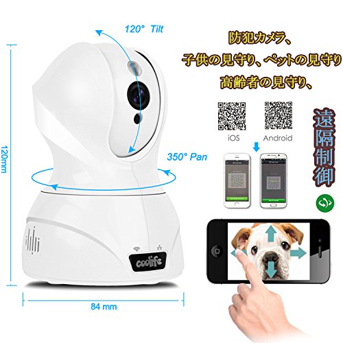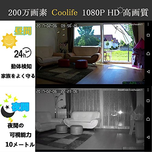 Coolife 防犯・監視カメラ WIFIリアルタイム 1080P 200万画素 暗視撮影 双方向音声