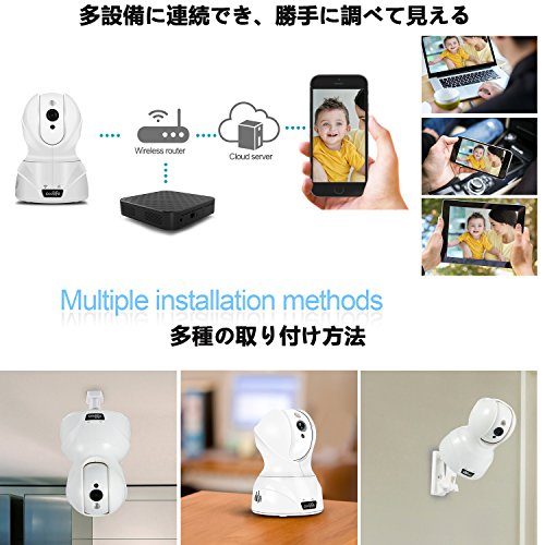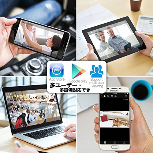 - 【ワイヤレス機能】ワイヤレスWIFI&ネットワークケーブルから接続可能。Iphone、Android、PCなどの設備に対応でき、多ユーザー同時に使用可能監視カメラです。SDカードは最大120GBまでに対応出来ます。
