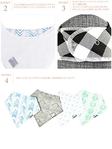 ●4枚セットになったバンダナビブは出産祝いに最適です。また、クリスマスや子供の日にプレゼントすればベビーがもっとファッショナブルに!