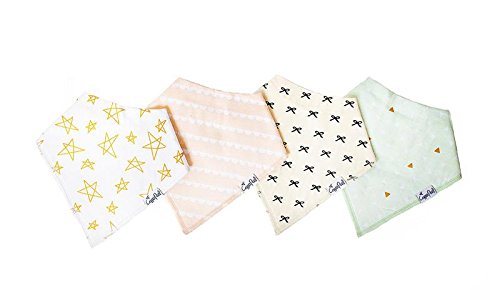 ABSORBENT COTTON DROOL BIB - These stylish drool bibs are made of 100% absorbent cotton on the front and 100% polyester fleece on the back. The front of the baby bib is a stylish knit fabric and the back is a super soft fleece that keeps your baby completely dry even with the drooliest of babies. Great for teething babies!;ADJUSTABLE NICKEL-FREE SNAPS - Each baby bandana bib comes with 2 nickel-free snaps that allow each bib to be adjustable in size to fit newborns and toddlers, with ages ranging from 3-24 months. . The snaps are secure, making it difficult for infants and toddlers to unfasten but are easy for parents to snap on and off.;TRENDY AND STYLISH BABY FASHION ACCESSORY - Our bandana bibs feature our own custom and unique designs that are trendy and fashion-forward. They're versatile and are the perfect finishing touch for any outfit.;UNIQUE BABY GIFT SET - Our 4-pack of girl baby bibs makes the best gift for new parents, new grandparents, baby showers, or for any excuse to make a baby look amazing.;MONEY BACK GUARANTEE - At Copper Pearl, we design trendy and fashionable clothing accessories for babies that are of the highest quality. These bandana bibs are durable and long-lasting even with babies that never stop drooling. That's why our product is backed with a 100% Money Back Guarantee. If you are unsatisfied in any way with this product, we will refund your money with no questions asked. So give it a shot and add it to your cart today!