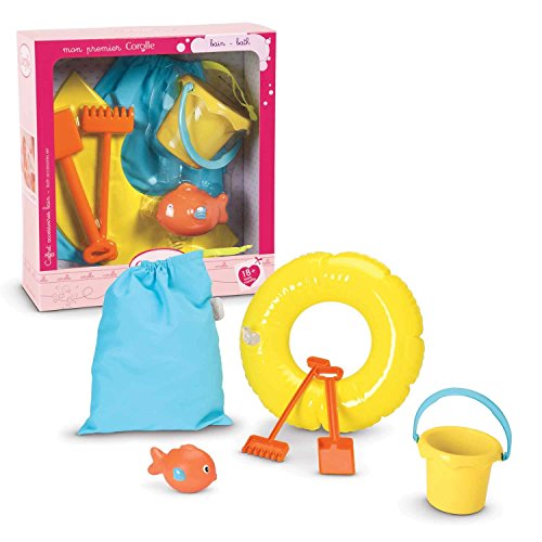 The Corolle Mon Premier Doll Bath Accessories Set is a fun accessory set and makes a great gift! This set includes an inflatable swim ring and floatie fish. It also includes a sand shovel, rake, and bucket. It even comes with a storage bag. Perfect for kids 18 months and older. About Corolle Corolle is a premier doll brand designed in the storybook region of France???s Loire Valley. Since 1979, Corolle has been creating highly detailed dolls designed to be cherished by children everywhere. Every Corolle doll will inspire magical childhood memories that will last for a lifetime. Corolle dolls look and feel as real as possible. They???re created of soft, supple vinyl, have natural-looking hair, and wear on-trend fashions. Corolle dolls are designed durable enough to withstand years of hugs and love. Perfect heirloom treasures! Doll play encourages children to explore different roles from caring for and sharing hopes and dreams to finding an understanding playmate and friend for life. Corolle designs dolls for children of all ages. There is a range of Corolle dolls designed for specific ages. Babi Corolle is a soft-body doll perfect for newborn babies and older. It???s machine-washable, feather-light, and made to be loved. Mon Premier Corolle is designed for babies 18 months and older. This line includes a range of baby dolls, clothing, and accessories. The dolls are lightweight and soft. The clothing has Velcro closures so it???s easy to put on and take off. Mon Classique Corolle is a classic baby doll designed for toddlers to love and nurture. This line has a complete assortment of larger baby dolls, clothing, and nursery accessories. Some even have hair that can be brushed and styled. Others coo, giggle, drink, and go potty. Mademoiselle Corolle is a toddler doll for toddlers. These dolls have expressive faces, silky long hair, and are dressed in the latest styles. This doll will be your little one???s best friend.