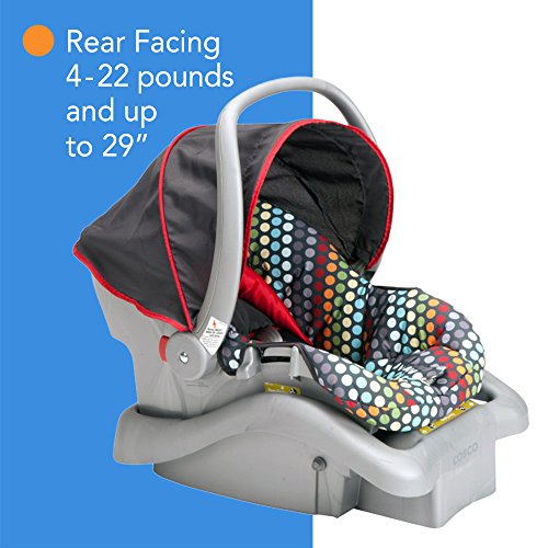 Rear-facing 4-22 pounds and up to 29 inches;Side Impact Protection;5-point harness with Center Front Adjustment;Infant insert gives a snugger fit for smaller babies;Latch equipped with convenient Latch storage