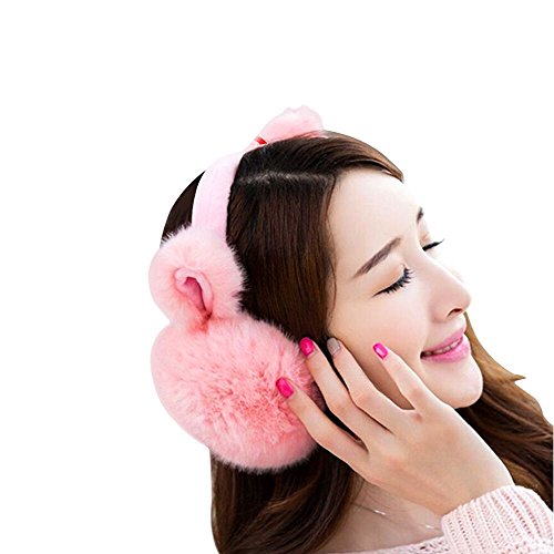 耳当て イヤーマフ  イヤーウォーマー防寒 小物 冬 スポーツ 耳カバー うさぎ耳 (ピンク)