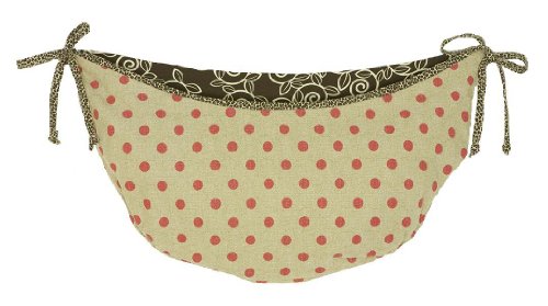 Raspberry dot 7 piece set contains dust ruffle, crib sheet, coverlet, diaper stacker, toy bag, pillow pack, and valance;Floral, animal print and polka dot patterns in raspberry pink, cream and brown, fun faux fur coverlet;Machine wash cold water, gentle cycle, tumble dry low