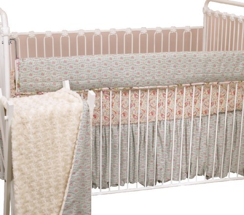 Front cover up set includes fitted crib sheet, dust ruffle, coverlet, and front cover up;Vintage florals with soft faux fur, soft pastels;Machine washable, cold water, gentle cycle, tumble dry low