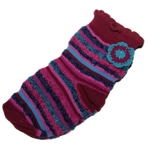- ☆ブラックベリー(紫)&水色ボーダーベースに立体感のある花のデコレーションが付いた超ラブリーソックスです。かわいらしいクローシェフラワーは今までにない斬新デザインです♪♪ ☆しっかりとした生地でできた靴下は履き心地も抜群です。また、防寒・保温対策も期待でき、秋冬のお出かけやお部屋着としても大活躍間違いなしです♪♪☆お祝いやギフト・プレゼントにも喜ばれるお勧め商品です♪♪