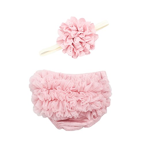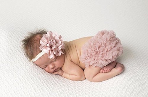 - Ruffle Bloomer & Lace Flower Infant Headband Set, Newborn Baby Girl, Mauve Pink