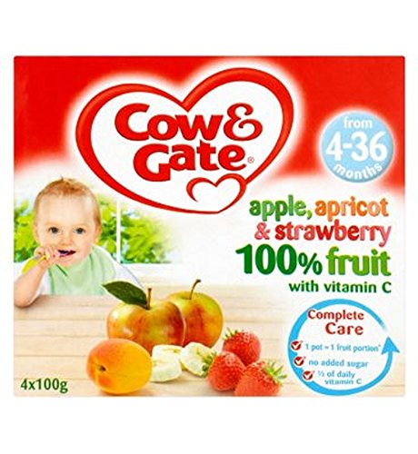 - Cow & Gate Apple, Apricot & Strawberry 100% Fruit with Vitamin C from 4-36 Months 4 x 100g (Pack of 2)