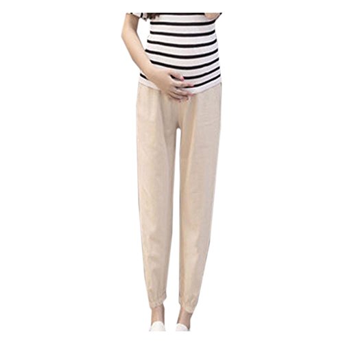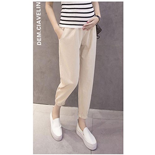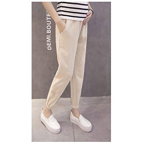 Cozy Maker(C&M)マタニティ パンツ ズボン 産前産後 レディース 妊婦 ポケット付き ゆったり 楽チン カジュアル 大きいサイズ 全6色 (L, ベージュ)