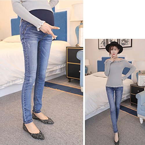 Cozy Maker(C&M)マタニティ デニムパンツ ズボン 産前産後 レディース スポーツ 妊婦 ゆったり 楽チン カジュアル 大きいサイズ ロングパンツ 裏ボア ボア付き (XL, ブルー)