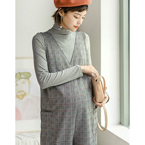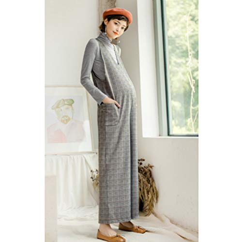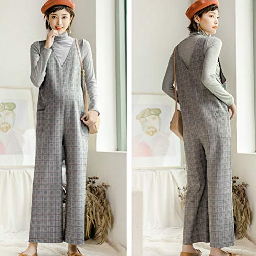Cozy Maker(C&M)サロペット 妊婦服 マタニティ パンツ レディース ボトムス オールインワン オーバーオール 体型カバー ロング丈 大きいサイズ ゆったり 産前産後対応 暖かい チェック柄 シンプル ワイドパンツ (XL, グレー)